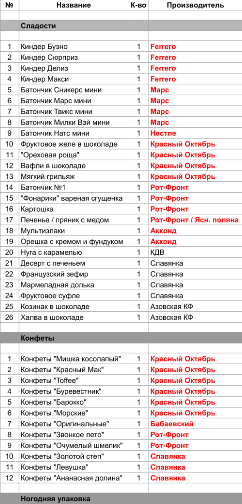 1. Проверить, можно ли внести изменения в состав подарка. Если нет, то скорее всего наборы были собраны еще летом из конфет, произведенных еще раньше